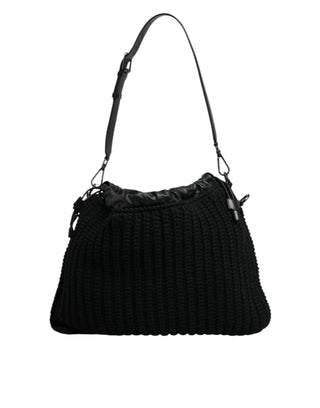 Dolce & Gabbana Black Cashmere Knitted Leather Shoulder Bag