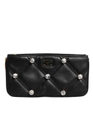 Dolce & Gabbana Black Leather Crystal Embellished Logo Shoulder Bag
