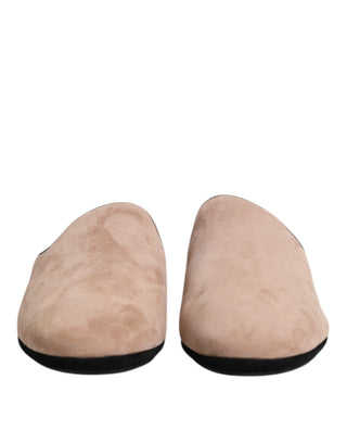 Dolce & Gabbana Beige Capra Suede Slides Flat Slipper Shoes