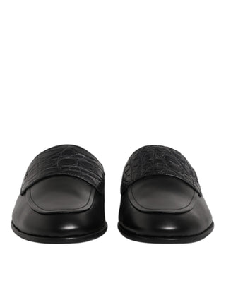 Dolce & Gabbana Black Calfskin Leather Slip On Loafers Shoes